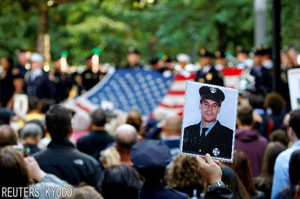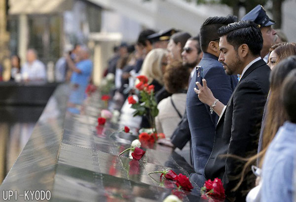 | 紐約世貿中心舊址舉行的紀念儀式(9月11日,Reuters-Kyodo) |