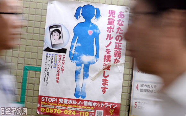 | 地鐵內張貼的打擊兒童色情的海報(東京) |