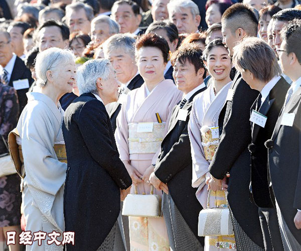 | 天皇夫婦與出席園遊會的各界人士交談(9日,東京元赤坂) |