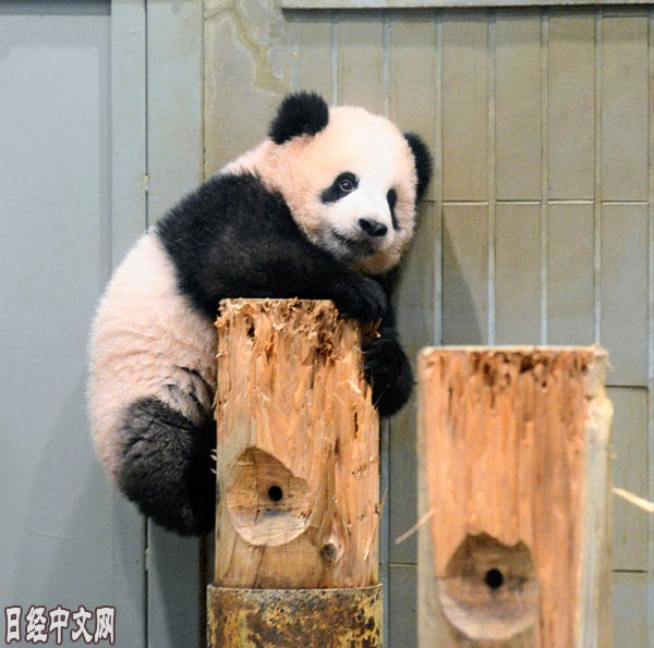 | 爬上圓木樁的香香(6日,東京上野動物園,東京動物園協會供圖) |