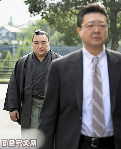 | 前往貴乃花部屋宿舍謝罪的日馬富士(左)和其師傅伊勢濱(11月14日,福岡縣田川市) |