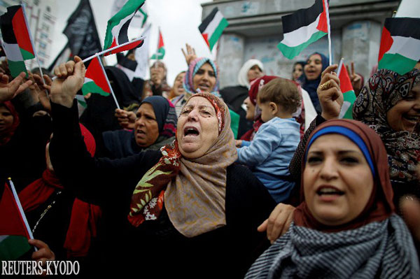 | 抗議川普政府決定的巴勒斯坦女性(6日,巴勒斯坦自治區,reuters-kyodo) |