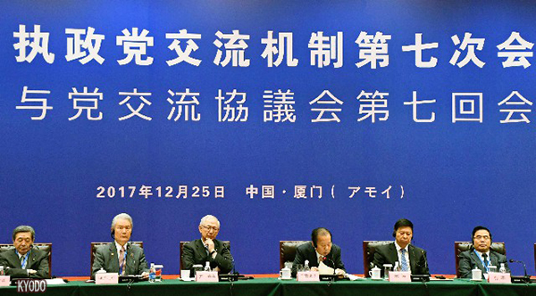 日本自民、公明兩黨與中國共産黨的定期對話方塊架「中日執政黨交流機制第七次會議」於12月26日閉幕。會議期間,與會代表圍繞政治、經濟和人文交流專題進行建設性深入討論,達成廣泛共識,並通過《中日執政黨交流機制第七次會議共同倡議》,表明將繼續推動中日關係大步向前發展,增進兩國國民的幸福感,為維護地區和世界和平、穩定和繁榮做出積極貢獻。