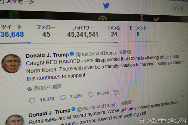美國總統川普12月28日在推特上發文稱,「對於中國允許向朝鮮供應石油感到非常失望」。稱「如果這種狀況持續下去,在朝鮮問題上將找不到友好的解決對策」,在暗示可能採取軍事行動的同時,警告了對加強對朝鮮施壓持慎重態度的中國。