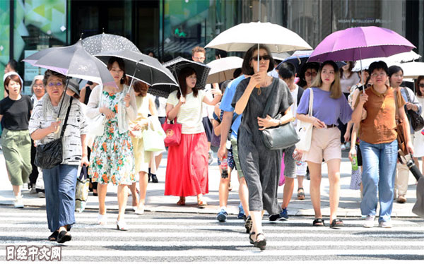 | 烈日下打著陽傘的行人(7月18日下午,東京都中央區) |