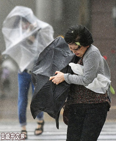 | 在暴雨中艱難艱難前行的行人(7月3日,福岡市) |
