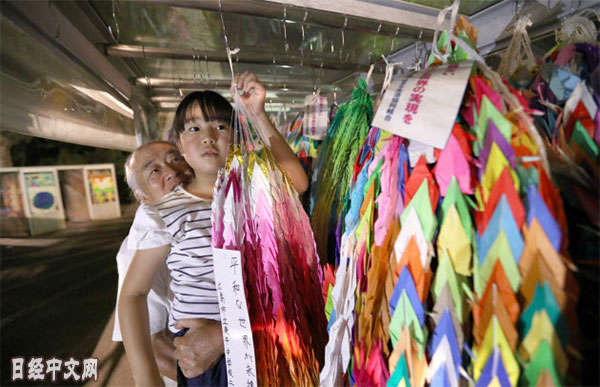 | 千紙鶴共同祈禱和平(6日淩晨,廣島市) |