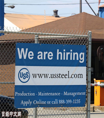 被中國等奪走訂單的美國鋼鐵2015年12月關閉了該鋼鐵廠的高爐。這是在100多年的歷史上第2次被關閉,但在今年3月鋼鐵和鋁關稅啟動之後,自6月起重啟生産,還決定雇用800人,鋼鐵廠柵欄上張貼著「正在招募員工」的廣告。