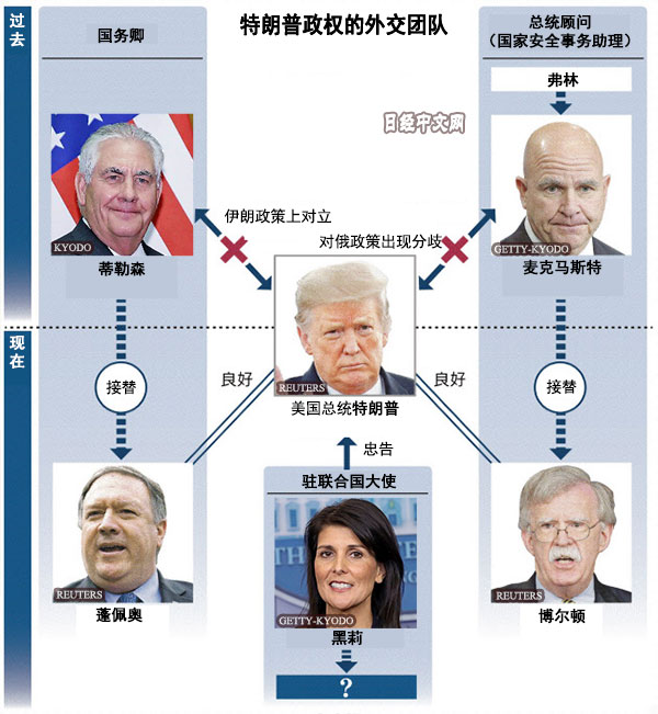 美國駐聯合國大使海莉將在2018年底辭職的消息公佈後,成立不到兩年的川普政權預計將對外交部門關鍵人員進行大換血。就連倡導國際合作路線的美國國防部長馬蒂斯也一直傳聞要被撤換,可向川普提供建議的「監督者」的影響力在不斷減弱。川普不重視隨機應變的國際合作,如果進一步加強獨斷行為,美國外交將會更加不穩定。