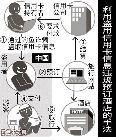 由於每起違規預訂涉及的金額較小,而且是以日本人的信用卡預訂日本的酒店,信用卡公司方面不容易發現違規行為。如果盜用者在中國,日本警方也無法對其展開調查。