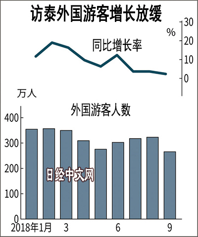 目前訪泰遊客增長放緩,截至9月連續3個月僅為3%左右。7月,泰國南部普吉島發生的船舶事故導致40多名中國遊客死亡。以此為轉捩點,佔訪泰遊客約3成的中國遊客轉為減少。