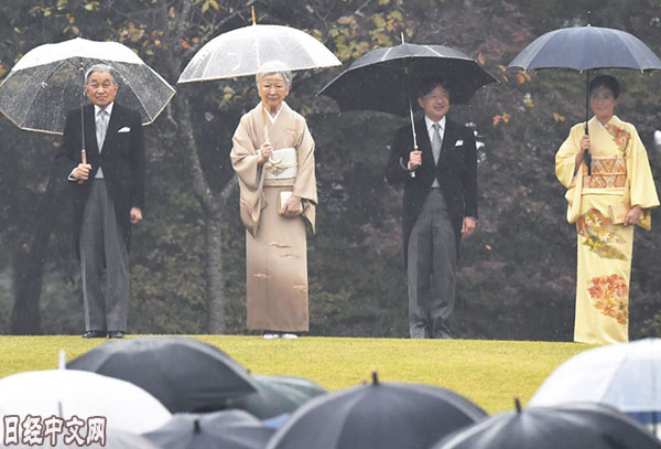 日本明仁天皇和皇后主辦的秋季園遊會11月9日在東京元赤坂的赤坂御苑舉行。由於明仁天皇將於2019年4月底退位,此次園遊會成為平成年代(1989年至今)的最後一次。