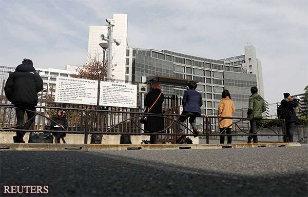 | 守候在東京拘留所大門外的媒體記者等(11月21日,東京,reuters) |