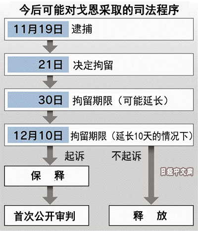 今後司法程序的最大焦點是判斷可否起訴戈恩。一般起訴的情況下,主要有兩種情形。如果戈恩否認起訴內容,通常難以獲得保釋,拘留很可能走向長期化。