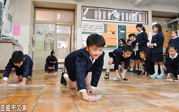 | 結業式後進行教室大掃除的小學2年級學生們(25日,東京都港區的芝小學校) |