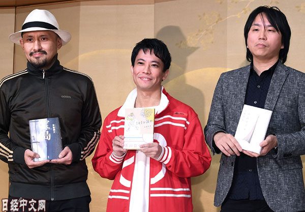 | 左起依次為真藤順丈、町屋良平和上田岳弘(16日,東京都千代田區) |