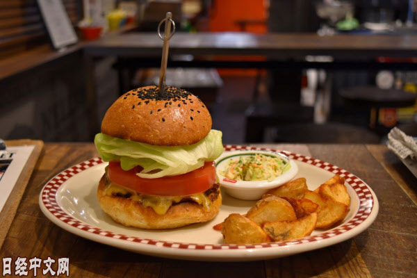 記者點了和川普當時所吃漢堡包同款的「科爾比傑克起司漢堡」。採用美國代表性的起司,加上百分百美國牛肉的自製肉餅和蕃茄、生菜等蔬菜,分量十足。佐以高麗菜沙拉和炸薯條,一套價格為1400日元(約合人民幣86.5元)。