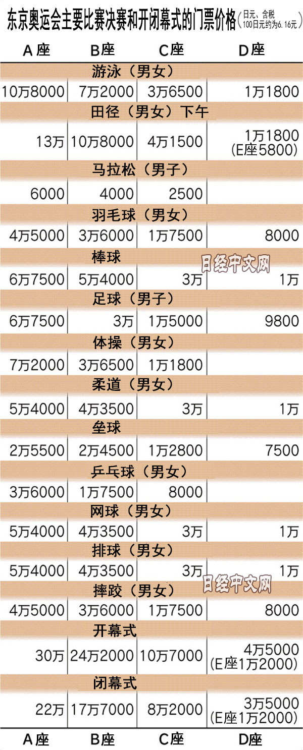 除了在全球倍受歡迎的籃球(最高票價10.8萬日元,約合人民幣6650元)之外,日本有望奪得獎牌的游泳(最高票價同上)和棒球(最高票價6.75萬日元,約合人民幣4160元)等項目的票價分為4種,包括最低不到1萬日元(約合人民幣615元)的門票。