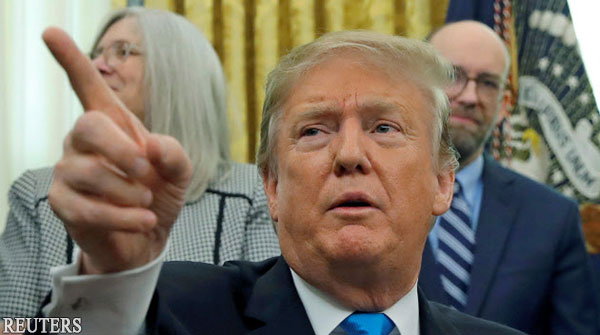 | 川普2月19日在美國白宮接受記者採訪(Reuters) |