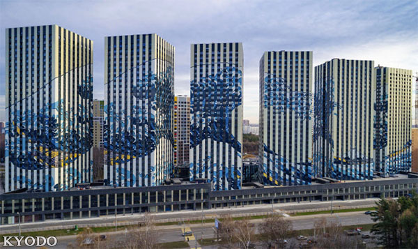 在俄羅斯首都莫斯科南部,有一處繪有日本江戶時代浮世繪師葛飾北齋(1760~1849年)代表作《富岳三十六景 神奈川沖浪裏》的高層住宅。據開發商表示,6棟住宅共計1500戶,已經售出了約1450戶,「很暢銷」,購房者將從3月開始入住。