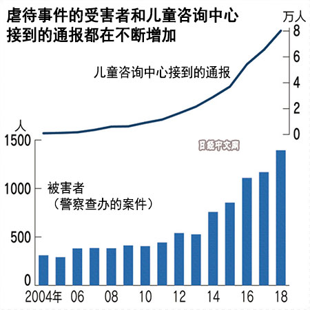 日本經濟新聞(中文版:日經中文網)3月14日通過日本警察廳匯總的數據獲悉,2018年日本各地警察查處的虐待兒童事件達到1380起,受虐兒童增至1394人。兩項數據均同比增加兩成,達到歷史最高水準。受虐致死的兒童為36人,同比減少22人。日本警察廳認為,有些案件由於積極查處而在早期階段阻止了虐待行為。