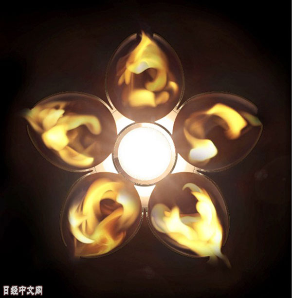| 東京奧運火炬,頂部設計成櫻花狀 |