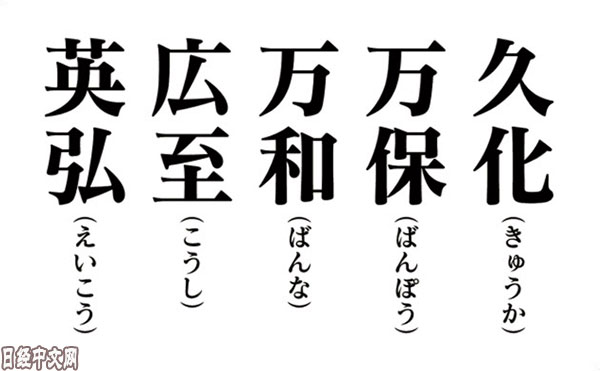 據日本政府相關人士介紹,「英弘」、「廣至」兩個候選方案引自日本典籍《日本書紀》。「廣至」和「萬和」則有兩個出處。