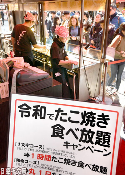 | 舉行與新年號相關的促銷活動的章魚燒店(2日上午,大阪市中央區的CREO-RU道頓堀店) |