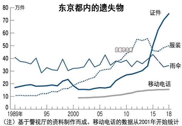 1天收到約1萬件遺失物——在東京都內發現的遺失物數量在平成30年間增至3倍。日本2018年的1年時間裏被拾到的現金金額達38億日元(約合人民幣2.3億元)左右,超過泡沫經濟時代,創歷史新高。物品方面,從以往排在第1位的「雨傘」變成了積分卡或駕駛證等「證件」。日本經濟新聞(中文版:日經中網)從遺失物的變化觀察了時代的改變。