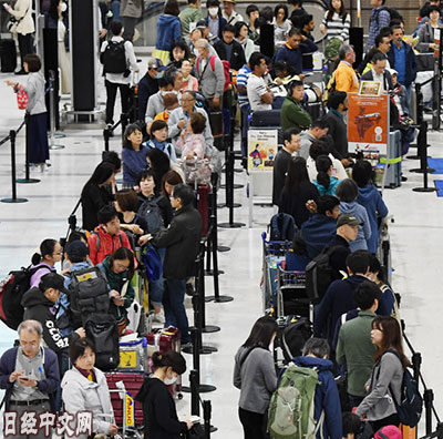 | 成田機場的人群(27日) |
