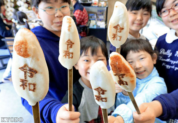 | 在311大地震中受災的宮城縣名取市地區的人們在「魚糕」上打上「令和」字樣 |