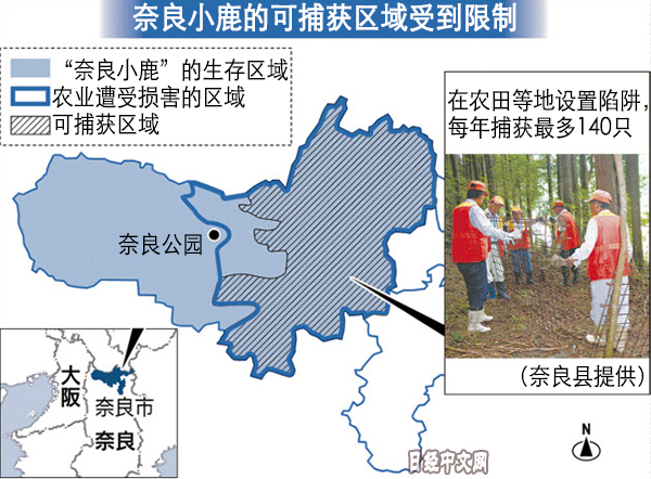 日本因國家天然紀念物「奈良鹿」造成的農業損失越來越嚴重。在市中心的奈良公園,鹿受到了大量遊客們的歡迎,極具人氣。然而在郊外山區生活的鹿卻頻繁破壞農作物。雖然奈良縣開展了捕鹿行動,但鹿作為珍貴的旅遊資源,其捕獲地區受到限制,因此未能控制住對農業的損害。