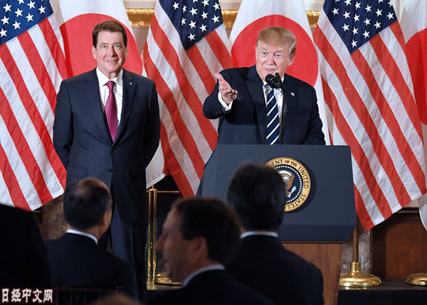 川普前往東京都內的美國大使公邸,出席了與日本約30名經濟界人士的見面會。在開頭的演講中表示「日本長期處於有利地位,但希望讓情況稍微變得更加公平」。提及日美的貿易不均衡,呼籲日本企業赴美國投資。