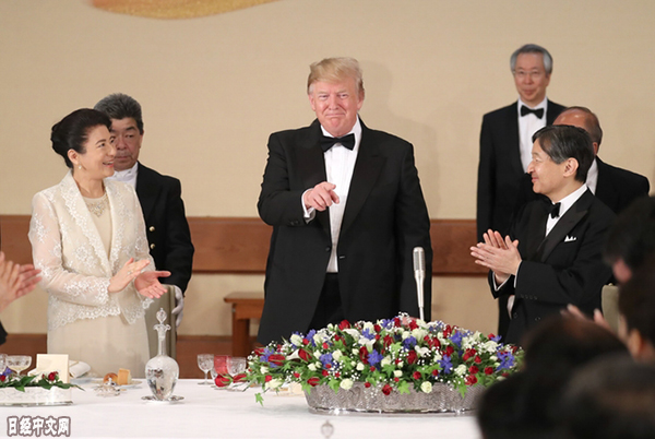 川普和梅拉尼婭夫人27日晚間出席了在皇居宮殿「豐明殿」舉行、由天皇夫婦舉辦的宮中晚宴。天皇在致辭時,基於兩國交流的歷史表示「作為隔著太平洋相接的極為友好的鄰國,正以強有力的友情紐帶連接起來」。