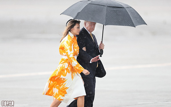 準備乘坐專機回國的川普與梅拉尼婭夫人