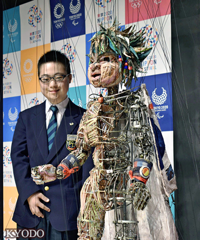 記者會上公開了高約120釐米的模型。模型的骨架採用竹子及輪胎等製作,頭上戴著帶有鳥嘴和犄角的頭盔,身穿披風。