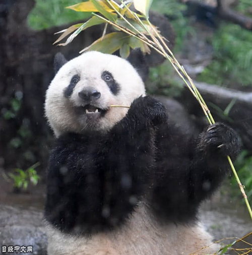 東京上野動物園的雌性熊貓寶寶香香將於6月12日滿2歲,動物園10日向媒體公開了香香在園內的情形。雖然天上下著雨,但香香非常開心活潑地爬樹、從架子上往吊床跳。香香剝開竹筍,用兩隻手拿著,左一口、右一口,吃得不亦樂乎。