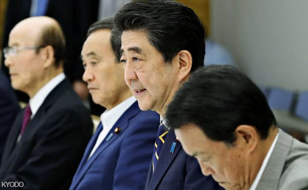 安倍在相關閣僚會議上講話(19日上午,首相官邸,kyodo) |