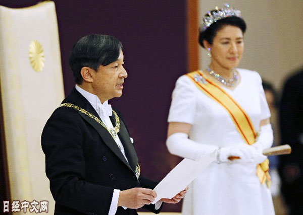 | 日本新天皇和皇后5月1日在「即位後朝見之儀」上(皇居) |