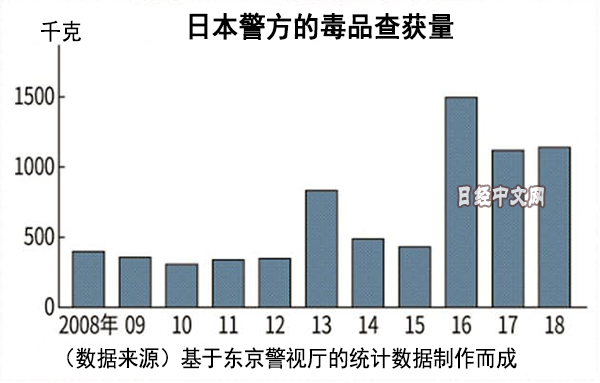 日本警方的毒品查獲量不斷增加,截止2018年連續3年超過1噸。最近倒貨行為異常突出,2017年警方在茨城縣發現約475公斤、2016年在沖繩縣發現約600公斤毒品。毒品在日本的末端交易價格為1克6萬日元左右,是東南亞各國的幾倍。警方認為欲出售毒品獲利的國際組織參與了此次事件。
