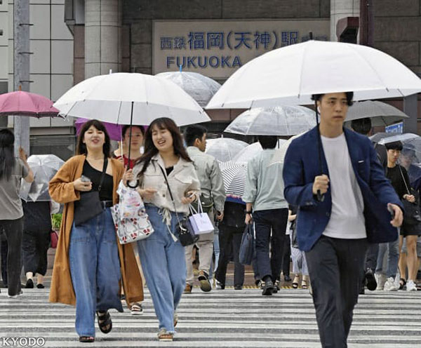| 在福岡天神繁華街上打傘的人群(6月26日下午,KYODO) |