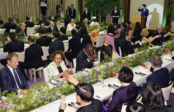 本次G20大阪峰會上隨處可見日本獨有的對賓客的款待。在日本首相安倍晉三主辦的晚餐會上,日本的狂言師野村萬齋登臺表演、鋼琴家辻井伸行也進行了演奏,對外展現了日本的精神和魅力。