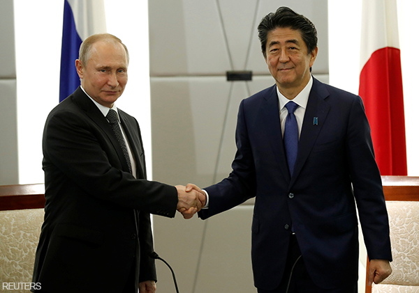 | 安倍與普丁握手(6月29日,reuters) |