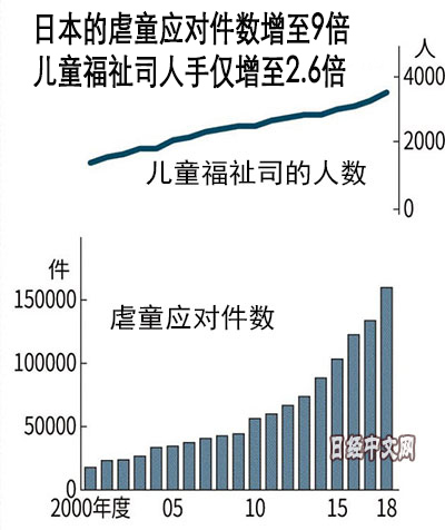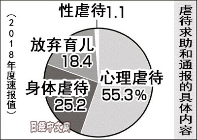 日本經濟新聞(中文版:日經中文網)8月1日從厚生勞動省匯總的統計數據獲悉,2018年度日本全國的兒童諮詢所應對的虐待兒童案件數(速報值)同比增加19.5%,增至15萬9850件。數量創歷史新高,自統計開始以來連續28年增加。來自警方等的通報數量佔到一半,日本厚勞省指出,「對虐待事件的認識提高,市民報警的情況增加」。