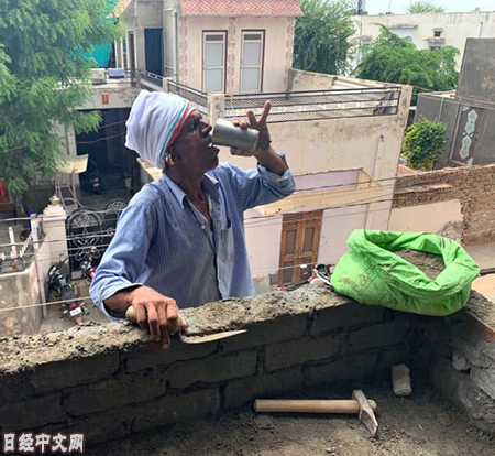 「第一次碰到這麼異常的炎熱天氣」,在沙漠面積擴大的印度西北部拉賈斯坦邦丘魯鎮,一位30多歲的男性建築工人感嘆道。