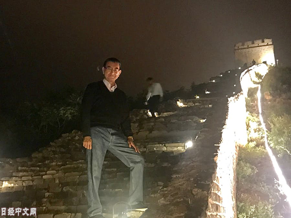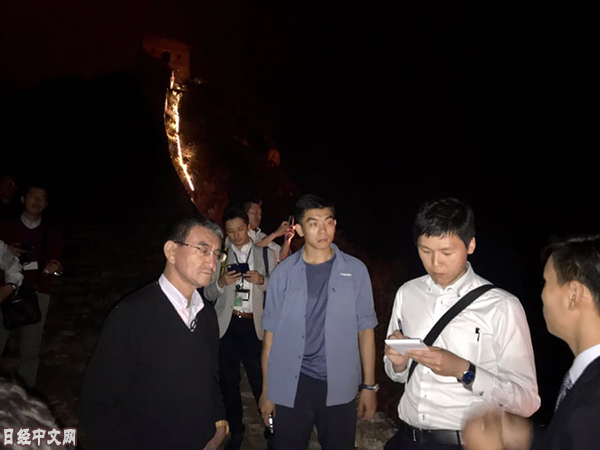 8月20日晚,日本外相河野太郎在出席中日韓外長晚宴之後,參觀了燈光下的夜長城。據悉,當時已是晚上10點左右,王毅還吃驚地問是現在這個時間去嗎,河野堅持前往,還為此帶了一雙輕便的運動鞋。