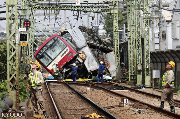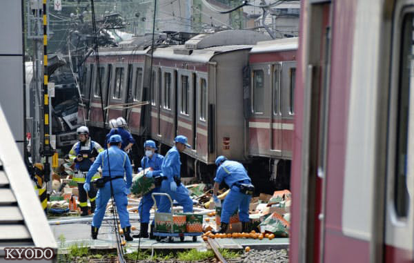 9月5日上午11時40分前後,在橫濱市神奈川區龜住町的道口,京濱急行電鐵的輕軌列車與卡車相撞,車頭等脫軌。橫濱市消防局等表示,30多名乘客受傷,已被送醫,另有1名男性死亡。死亡男性被認為是卡車司機。相撞後卡車起火,神奈川縣警方正在調查事故當時的詳細狀況。