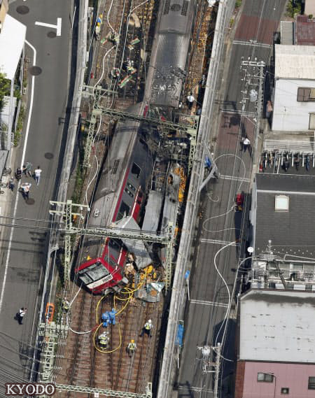 | 與卡車相撞後脫軌的車廂(9月5日下午,橫濱市神奈川區,KYODO) |