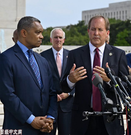 | 德克薩斯州的司法長官肯·帕克斯頓(Ken Paxton,右)等人9日宣佈啟動調查 |