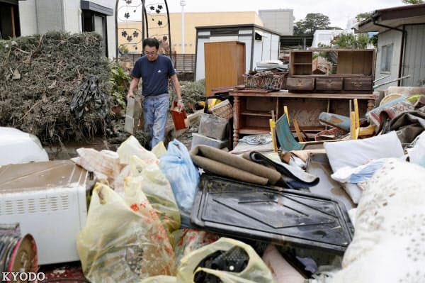 | 從浸水的住宅搬出家當的男性(10月15日上午,福島縣本宮市,Kyodo) |